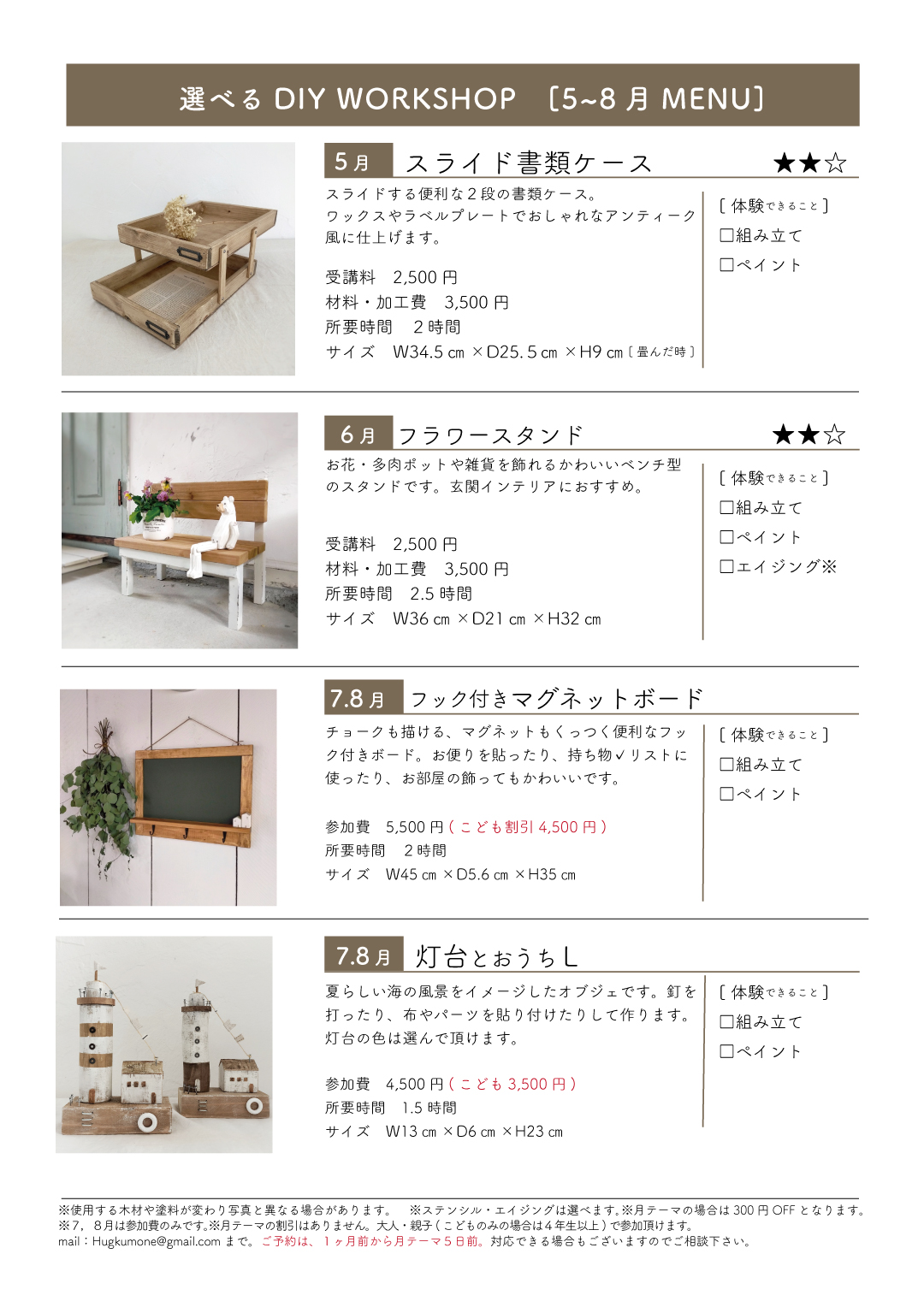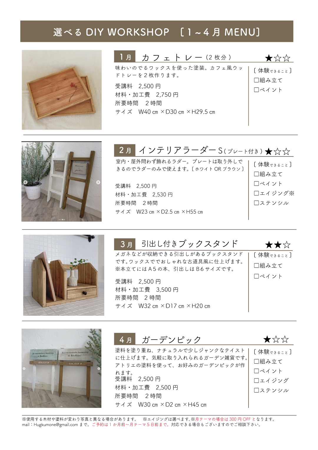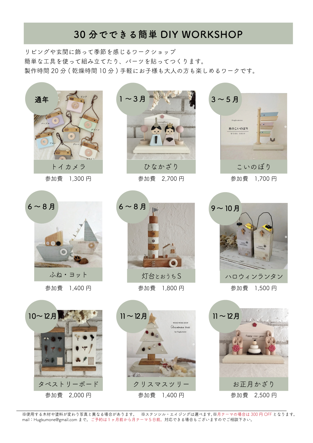 【月テーマ】【選べる木工DIY】のワークショップがあります。