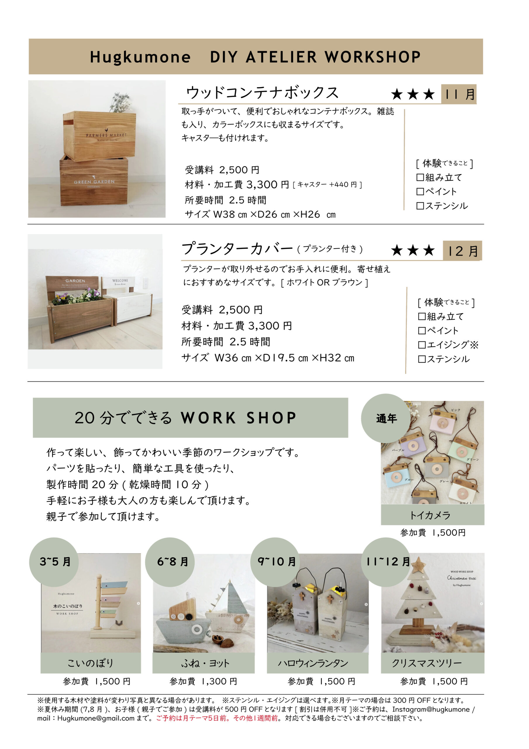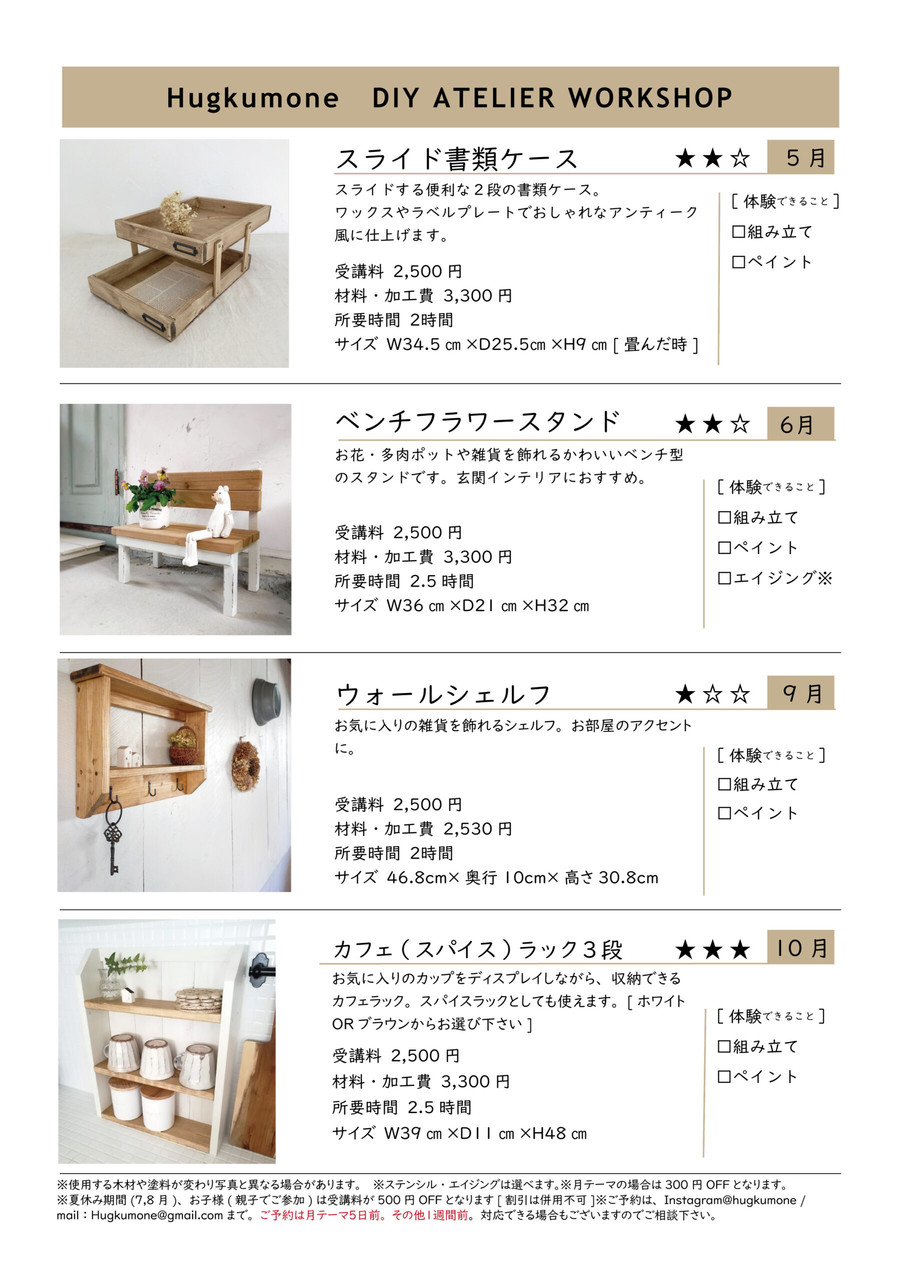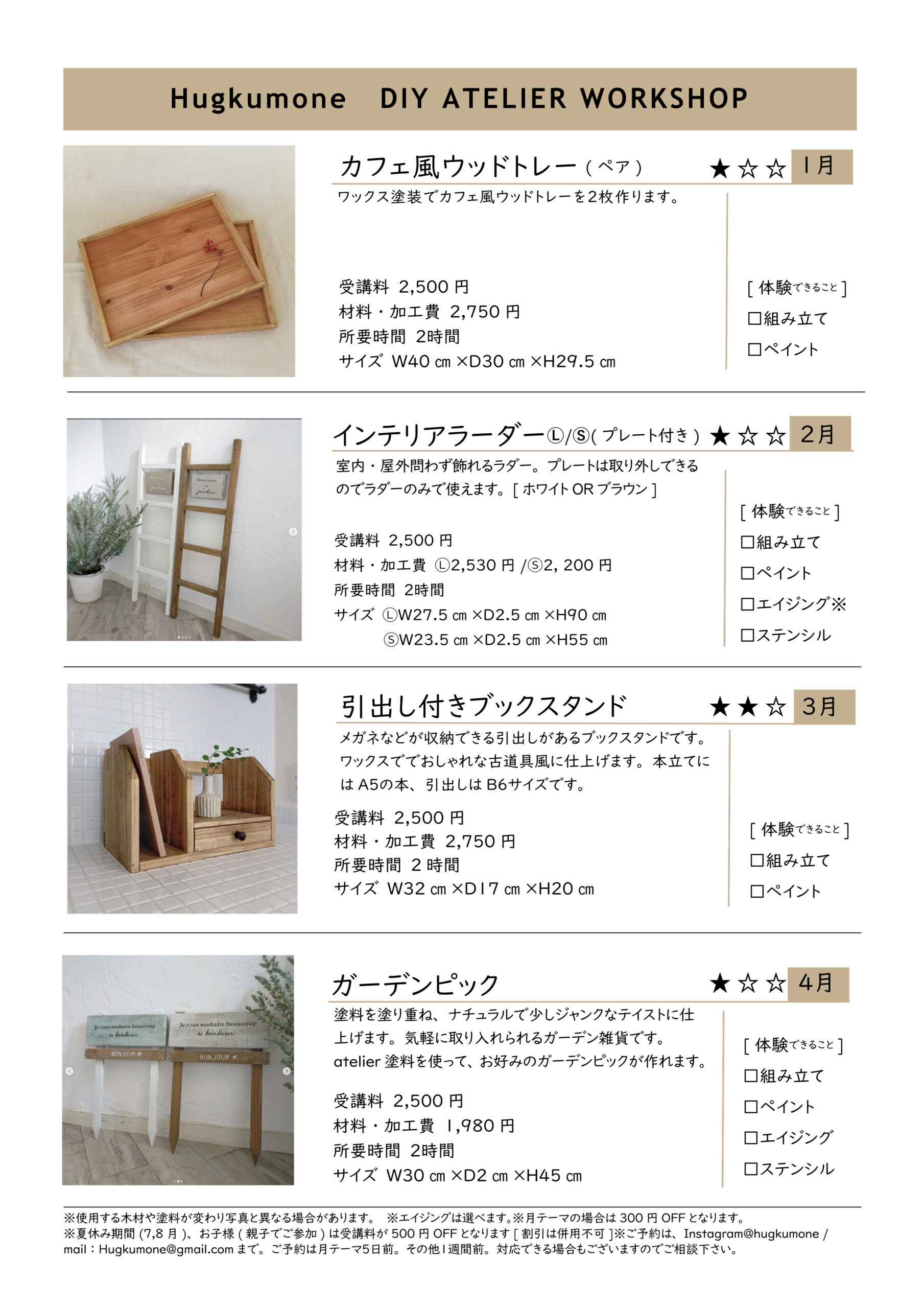 ハグクモーネアトリエでは木工DIYレッスン(ワークショップ)をしています。