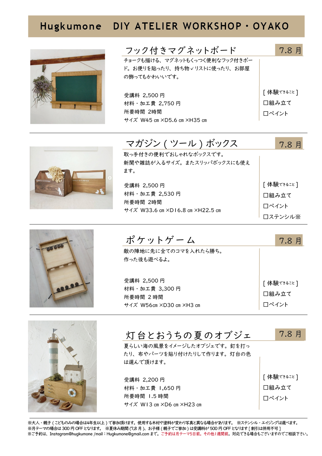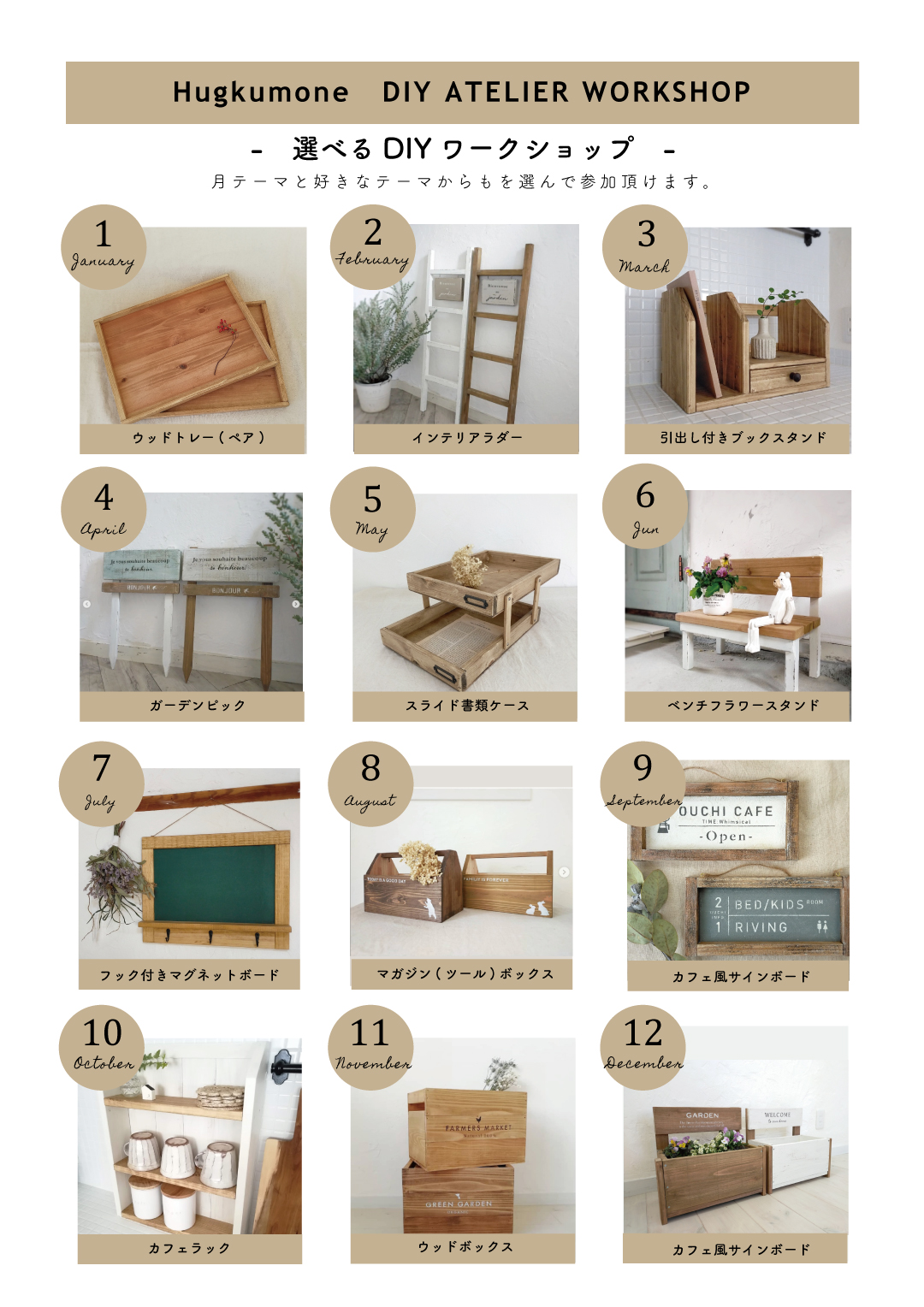 ハグクモーネアトリエでは木工DIYレッスン(ワークショップ)をしています。